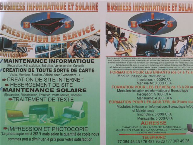 Diamé vient d’ouvrir sa boutique informatique à Thiadaye à 15 kms de Ndiaganiao.